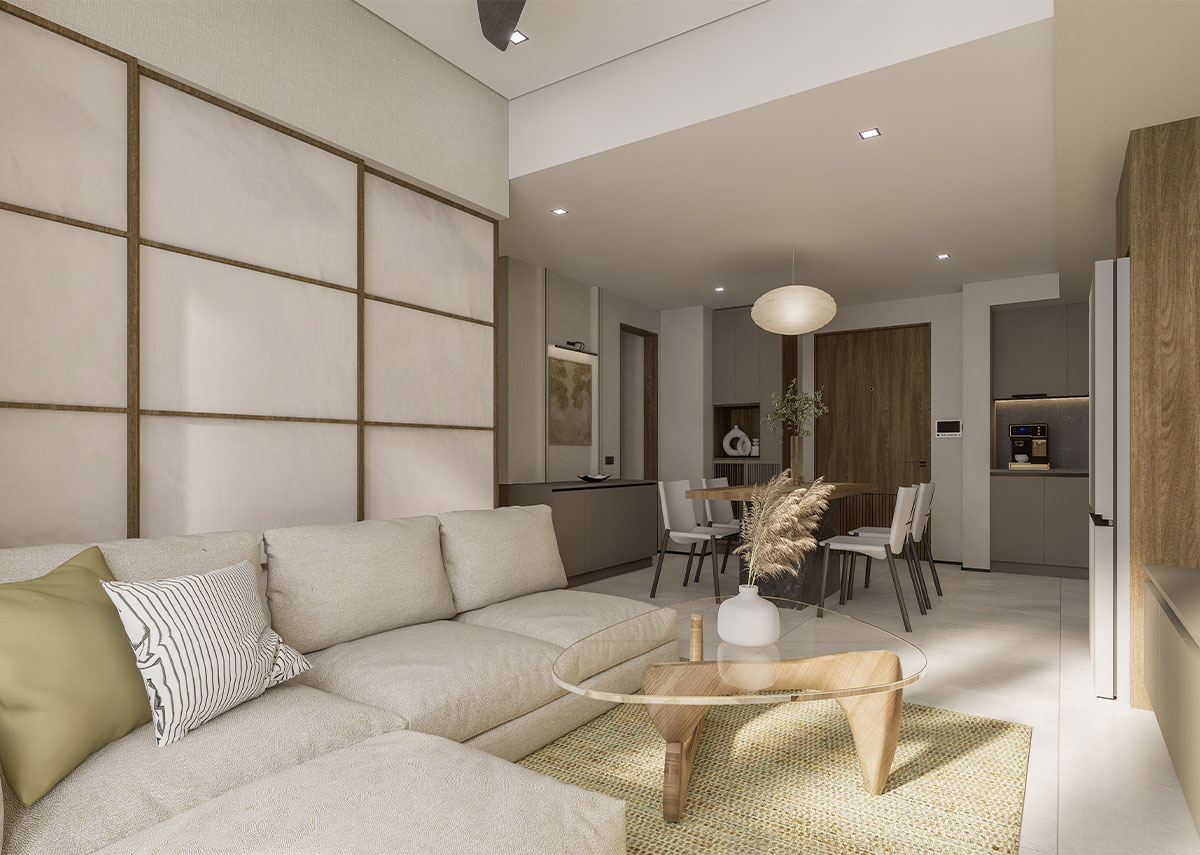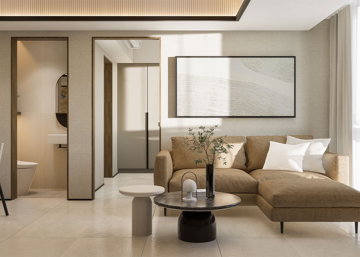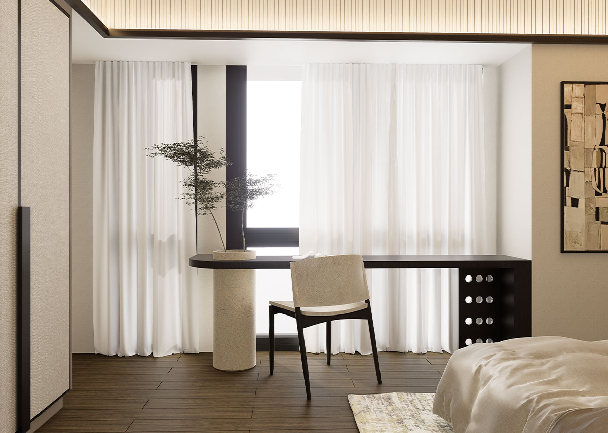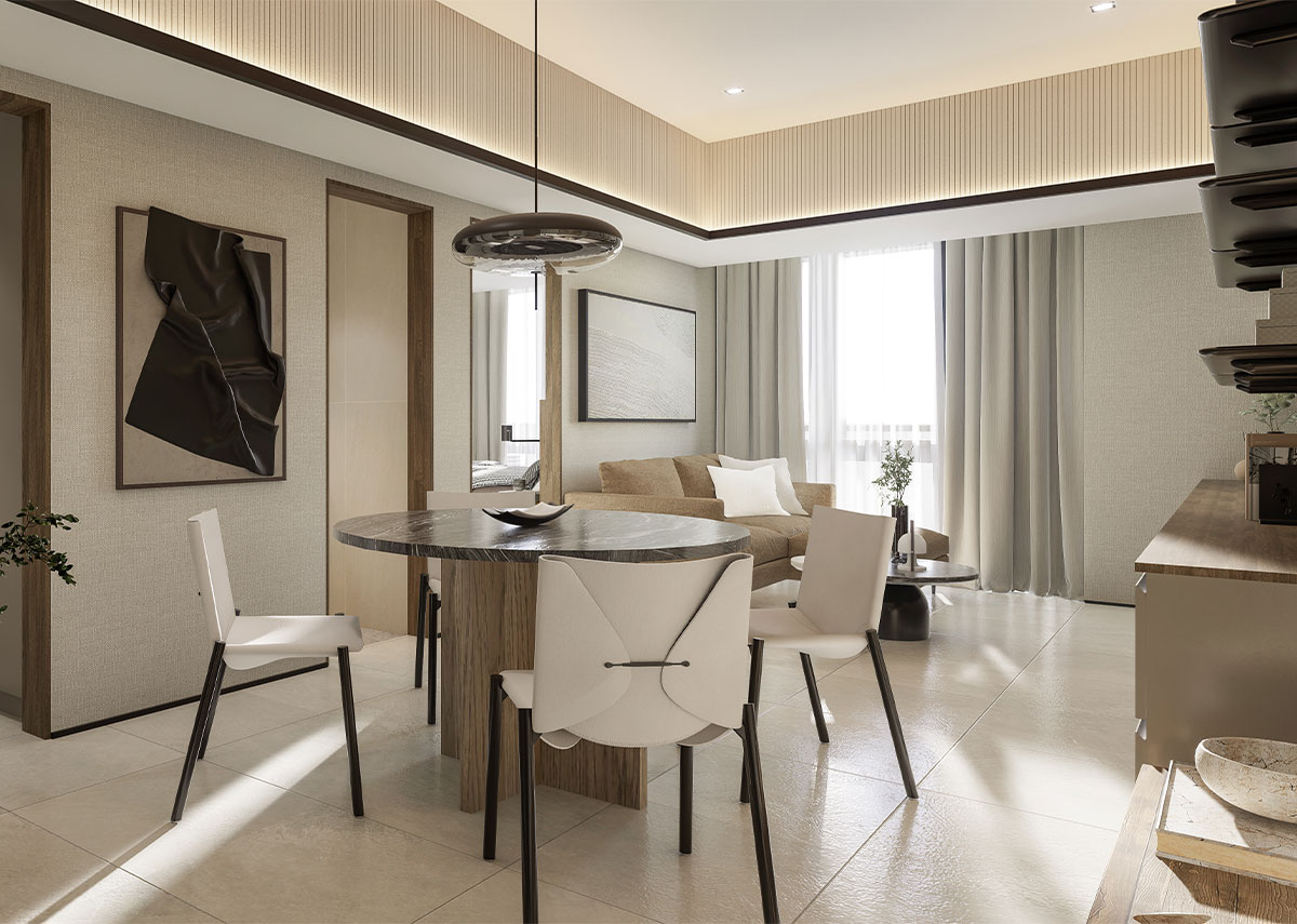 The facade of The Wave Towers draws from the graceful movement of waves reflected in the building’s flowing silhouette and calming architectural rhythm. Each space embodies Japanese elegant simplicity, with every line a deliberate expression of balance and restraint.