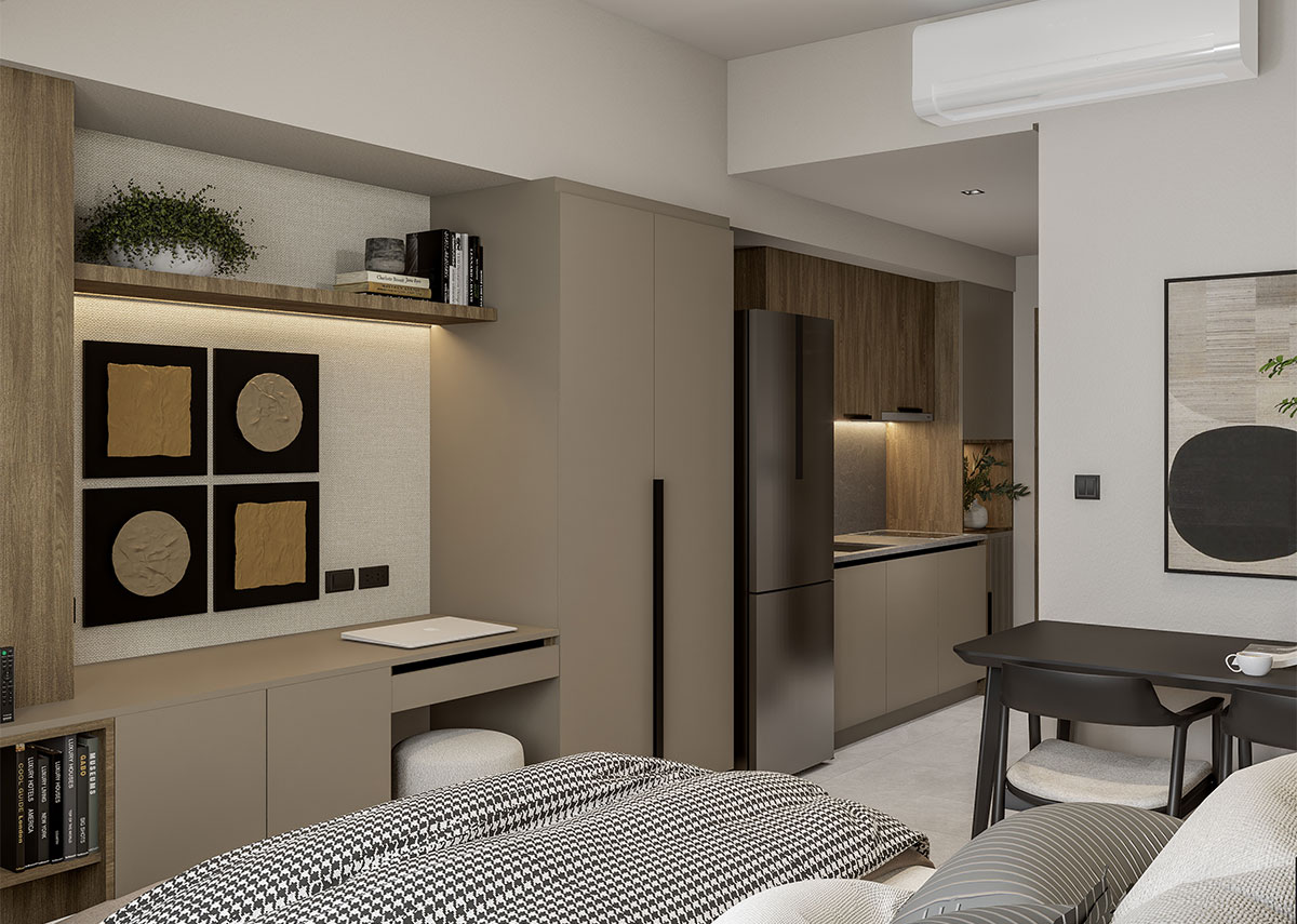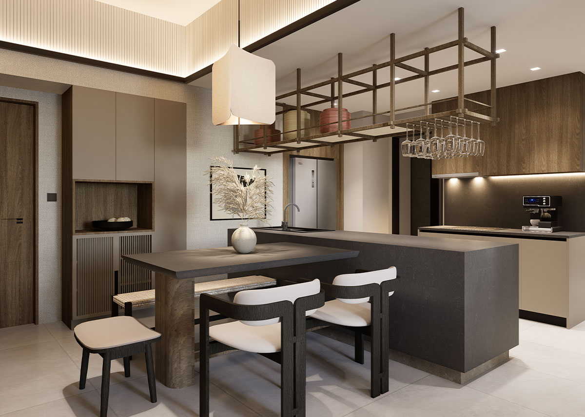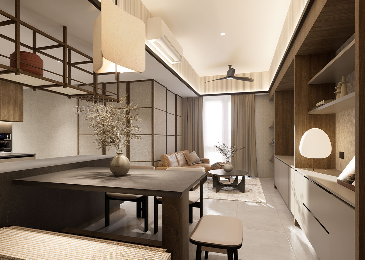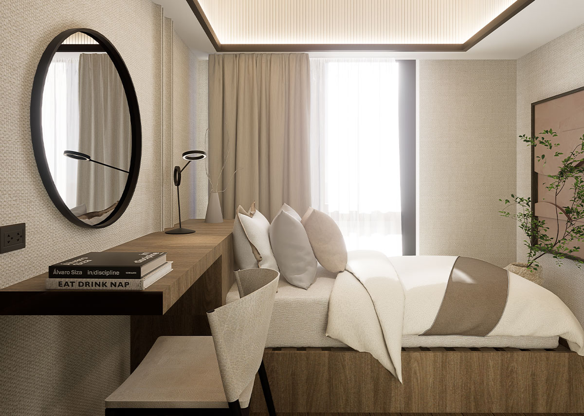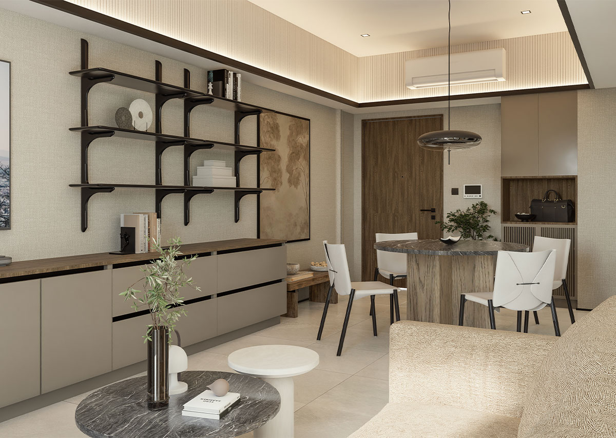 The facade of The Wave Towers draws from the graceful movement of waves reflected in the building’s flowing silhouette and calming architectural rhythm. Each space embodies Japanese elegant simplicity, with every line a deliberate expression of balance and restraint.
