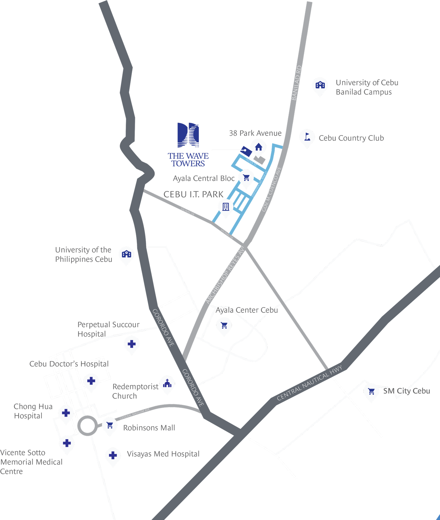 Located within Cebu I.T. Park, The Wave Towers presents a distinguished address for discerning individuals and families—where serenity is strength, and seamless access to the city’s top-tier offices, retail destinations, and premier urban conveniences defines everyday living.